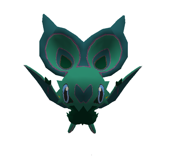 In the dense, misty jungles of Enkiria, Enkirian Noibat nests inside hollowed trees, emerging only at dusk. It uses the ultrasonic vibrations from its wings to locate prey and extract nectar-like fluids from giant insect husks. Travelers say its cries sound like whispers asking for permission to feed.